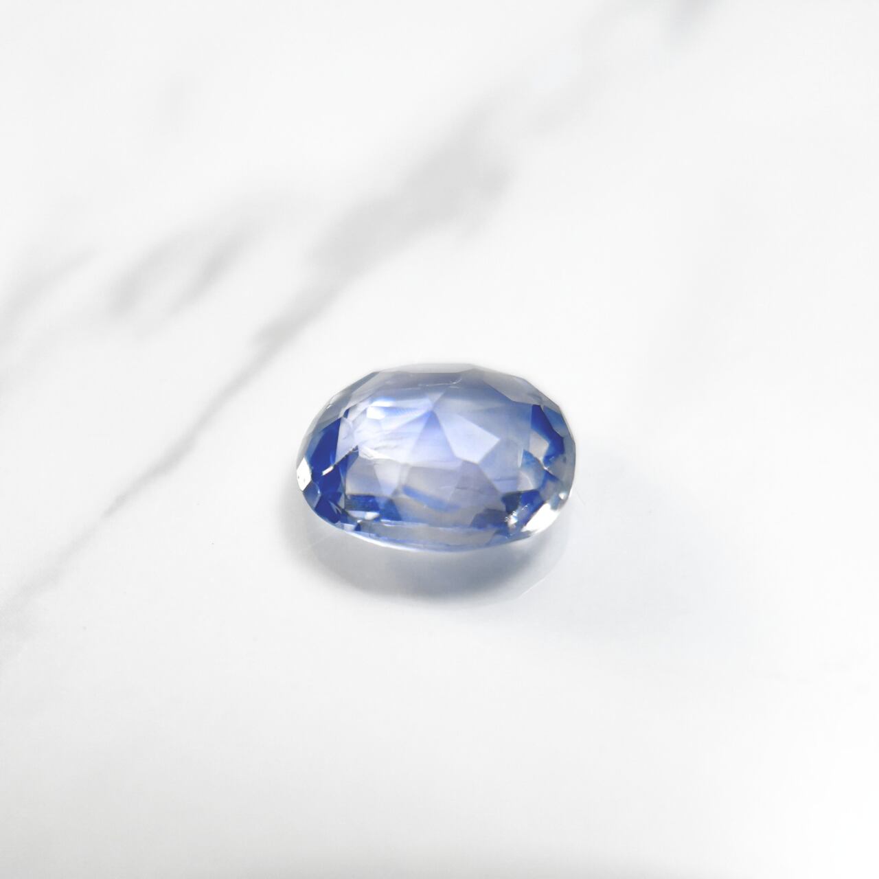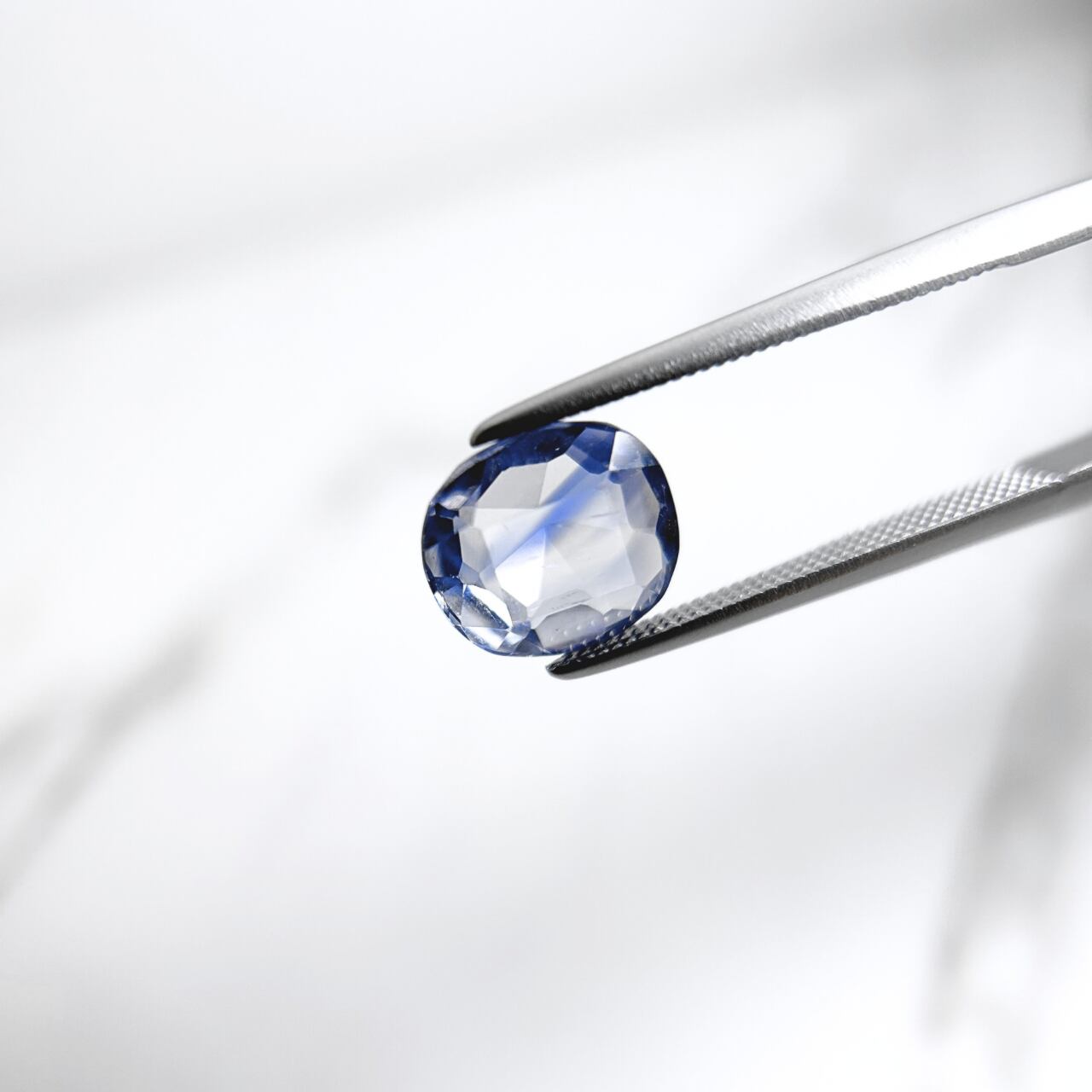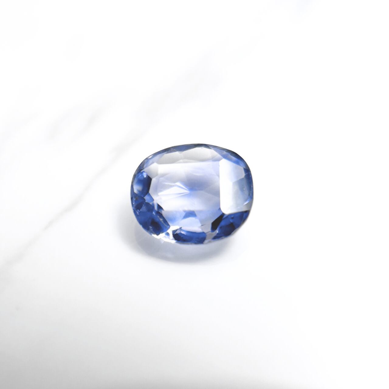 価値が高い宝石の条件と言えば「全体に色が均一で濃い」「左右対称のカット」などが挙げられますが、こちらのサファイアはそれとは真逆な性質を持っています。