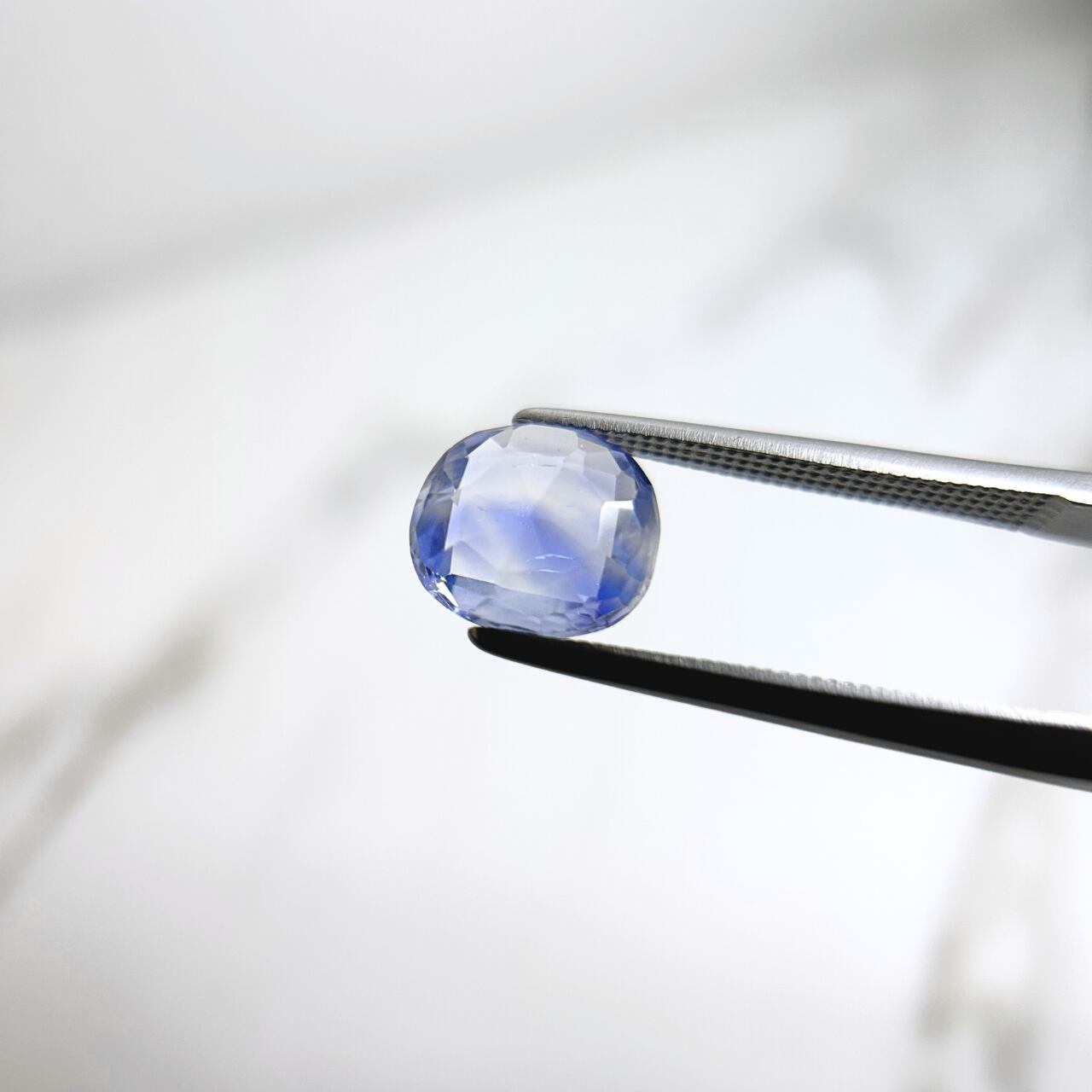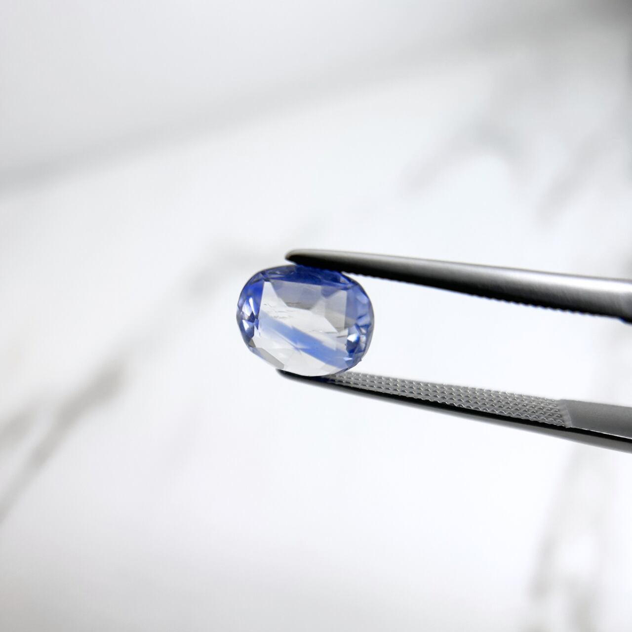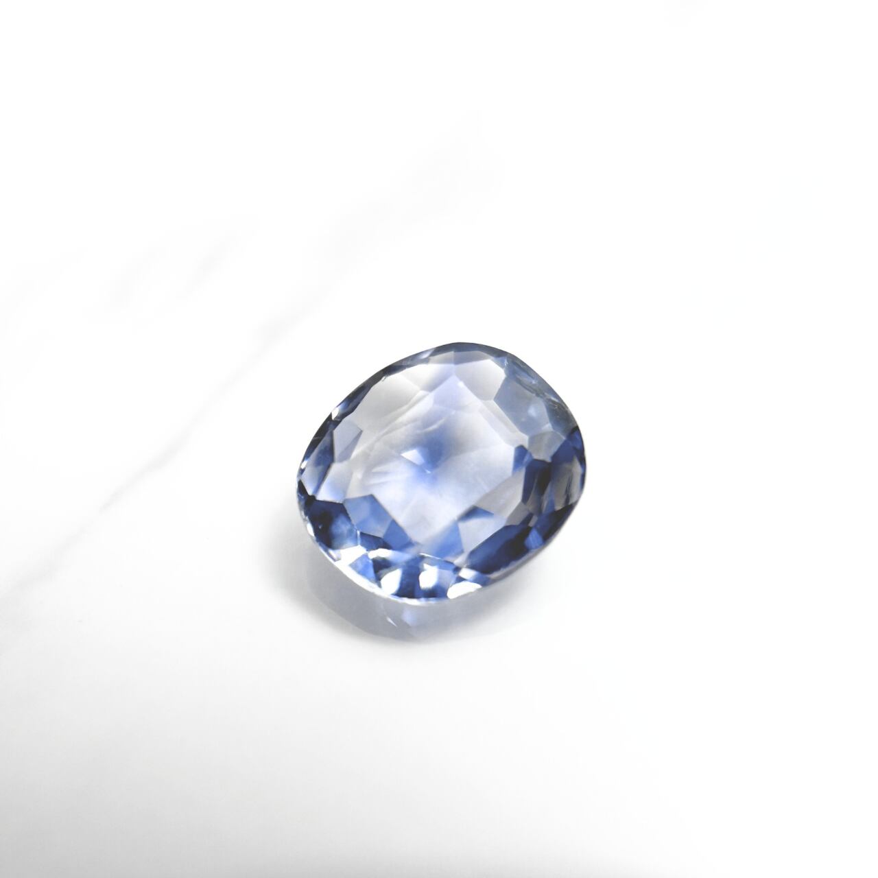 価値が高い宝石の条件と言えば「全体に色が均一で濃い」「左右対称のカット」などが挙げられますが、こちらのサファイアはそれとは真逆な性質を持っています。