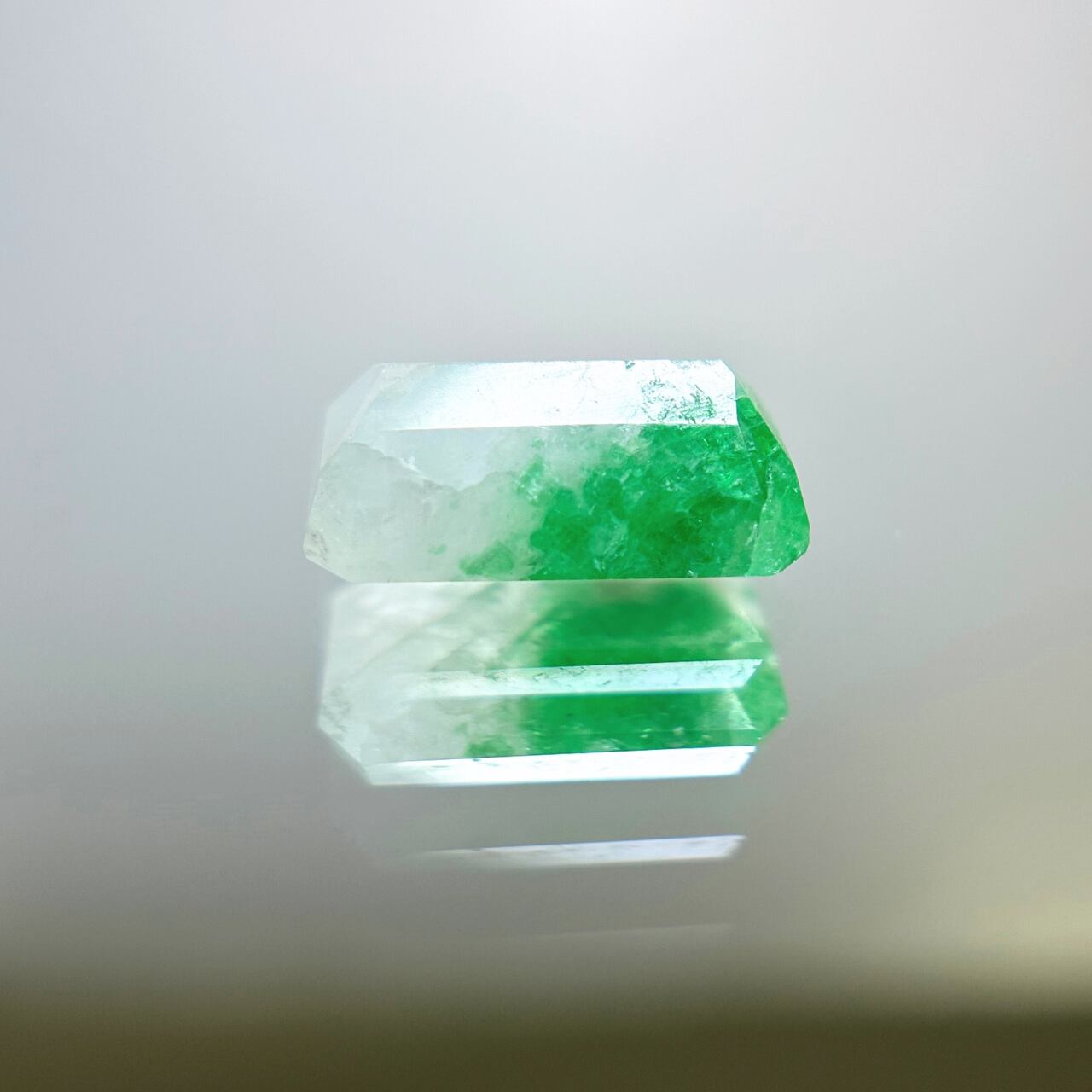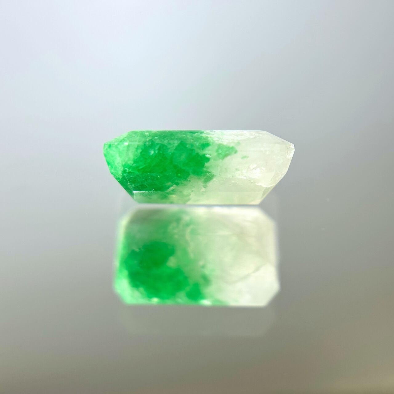 また、一部のエメラルドがクォーツに覆われるように見え隠れしているですが、その様が雲の中にエメラルドが浮かんでるようで、天然石好きのみなさまであればその様子もお楽しみいただけるかと…。