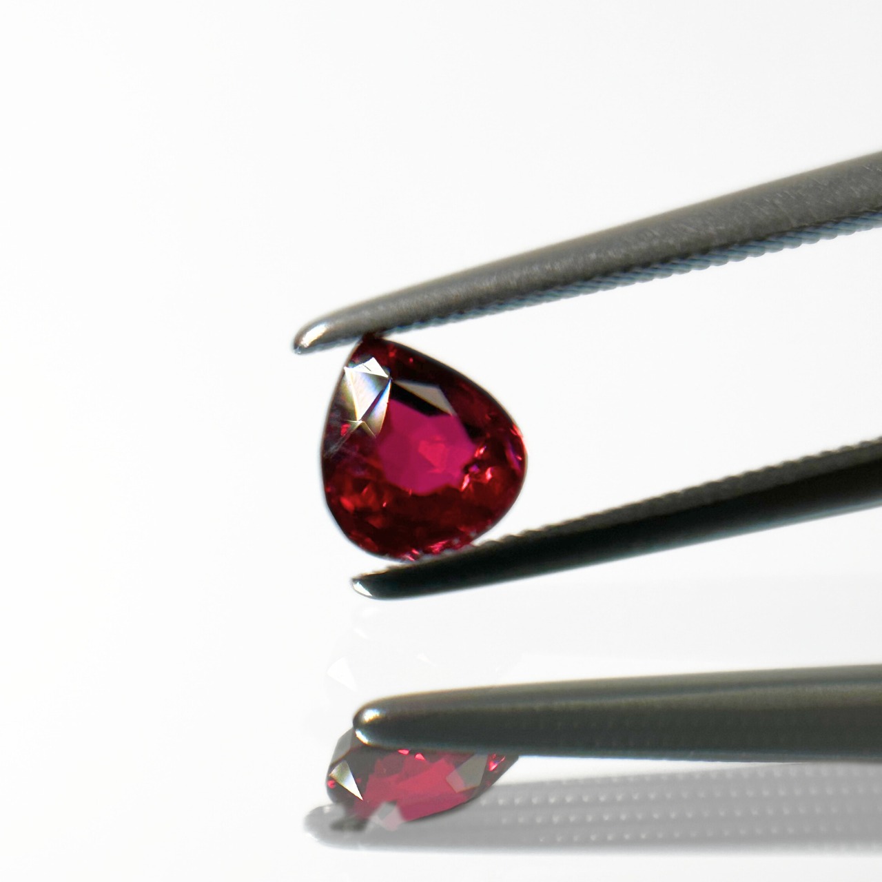 ただ、『赤』とひとくちに言っても、オレンジに近い赤・パープルのような赤・真紅の赤…ルビーには本当に様々な『赤』がございます。こちらのルビーは、ピンク味を帯びたディープレッド。まさに熟成されたワインのような深みのあるお色味です。